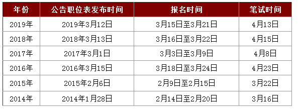 以下為歷年廣東公務(wù)員考試時間,可供考生參考: